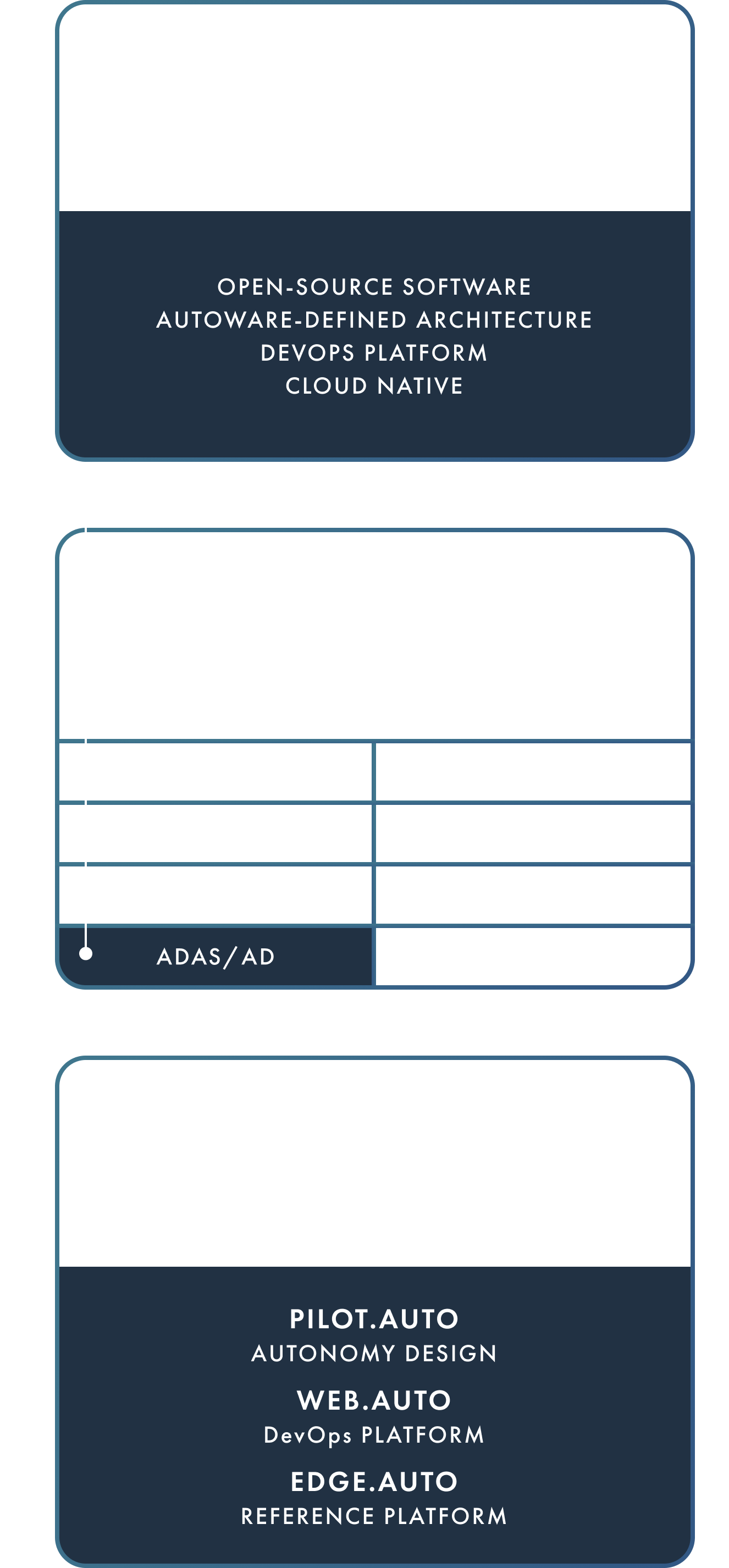 さらにティアフォーはMIHと密に連携し、Open AD Kitをベースに、MIHのOpen EVKitプラットフォームの要件に沿った車載グレードのADシステムソリューションを定義しています。 この取り組みにより、開発者はOpen AD Kitを活用して、MIH Open EVエコシステムを通じて拡張可能な車載グレードのADシステムソリューションを製品化することができます。